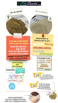 Riche en sodium, le céleri, une fois déshydraté et réduit en poudre permet d'assaisonner tout type de plats. A ne pas confondre avec le sel au céleri qui n'est autre qu'un mélange de sel blanc et de graines de céleri rave râpé, séché et réduit en poudre.